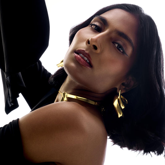 With the World War 2 at it’s peak for most of the decade, metal jewellery was wide spread in the forms of ID bracelets and heart lockets, in which women used to keep pictures of their loved ones. Utility in clothing and jewellery was the prevailing trend. We took this use of metal as our inspiration with ribbons as our motif to create this collection. We wanted to add a softness to this collection which is depicted perfectly through the movement of the ribbon. Keeping the usage of stones to a minimum so that you feel soft, airy, ethereal once you put the jewellery on, taking you into a state of flow.