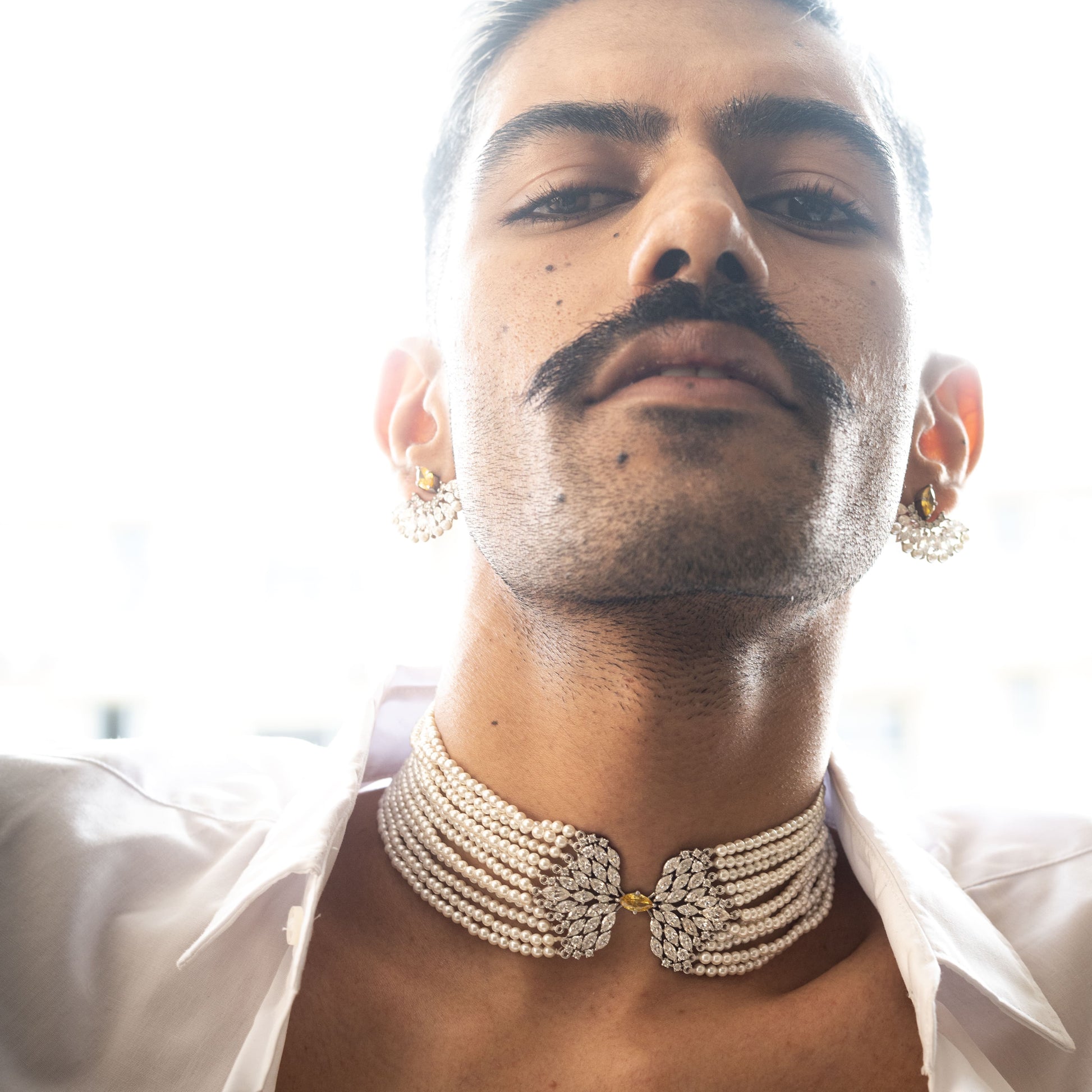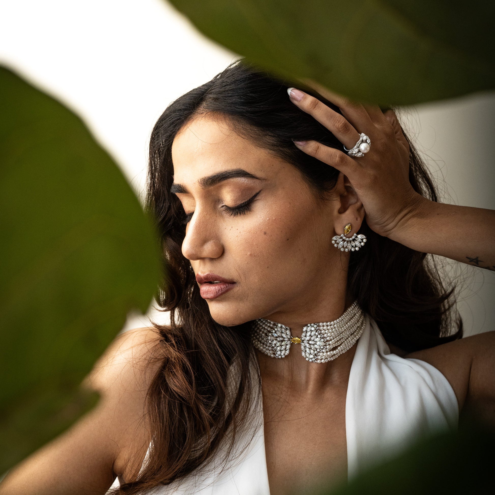 Princess of Monaco, Grace Kelly was often seen on and off screen with pearls adorned around her neck. We took that inspiration and ran with it! The Monaco is a dazzling necklace consisting of 22 strings of pearls. 11 on each side, attached to a scintillating cluster of marquise stones. All of them emanating from an enchanting yellow marquise in the middle. Elegant, glamorous, romantic and Oh so, Ra-Un!