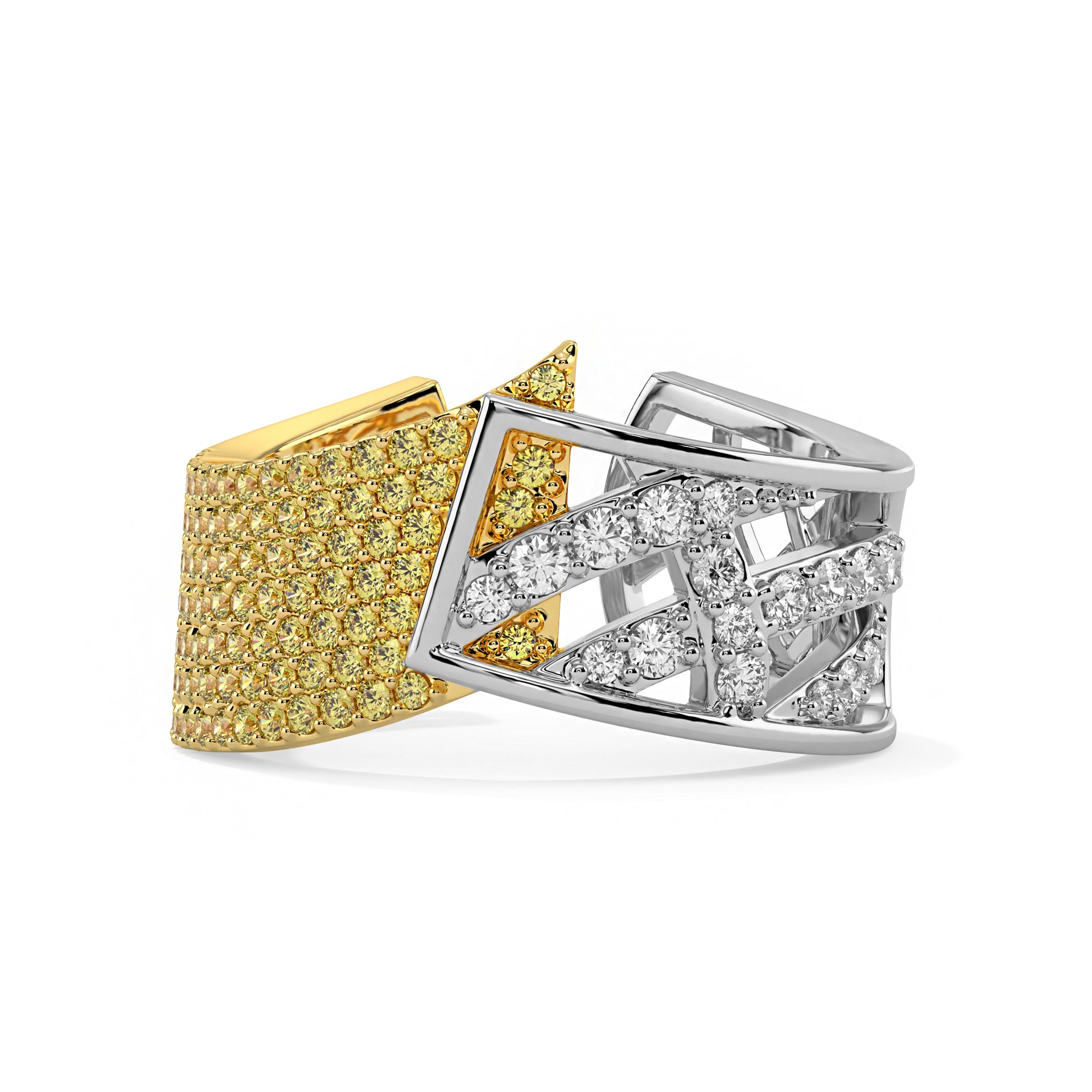 The Tony ring is a perfect blend of delicate arcs of silver and gold , catching light like fleeting thoughts. Eye catchingly bold drawing you into a moment that feels both intimate and infinite.