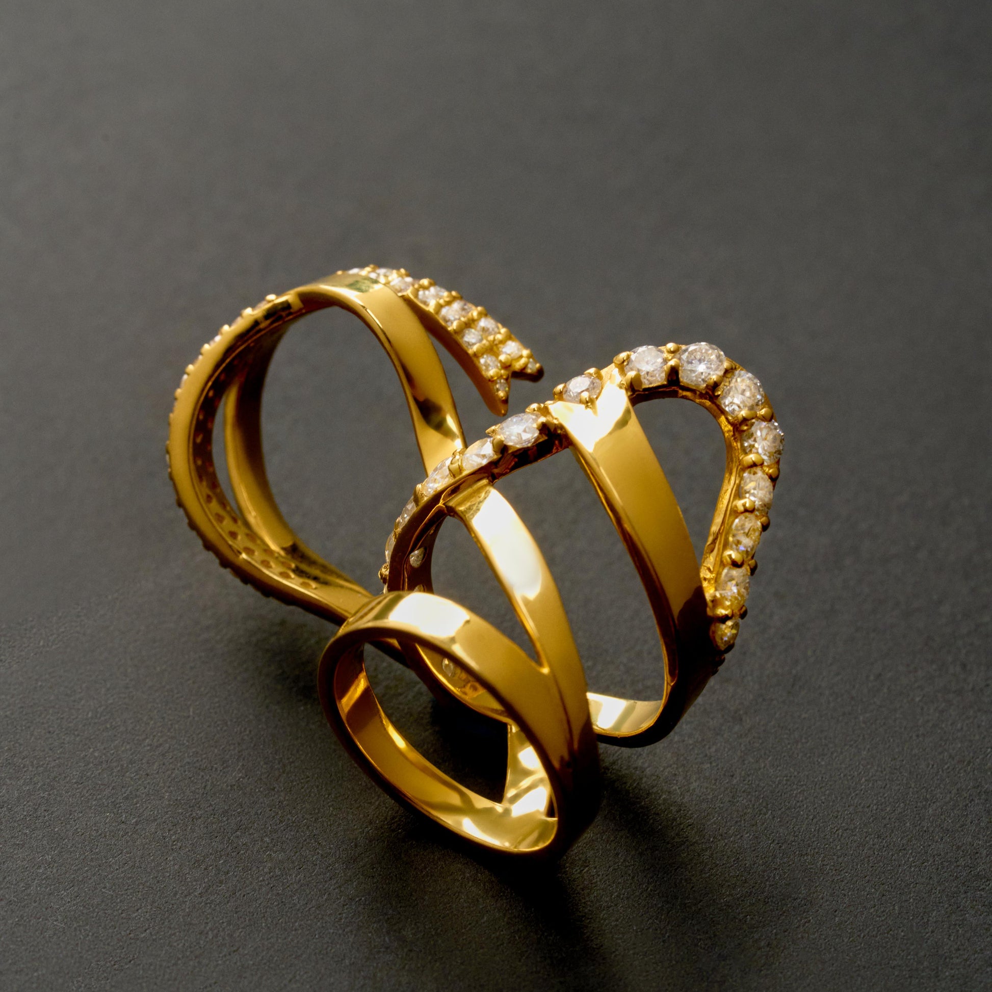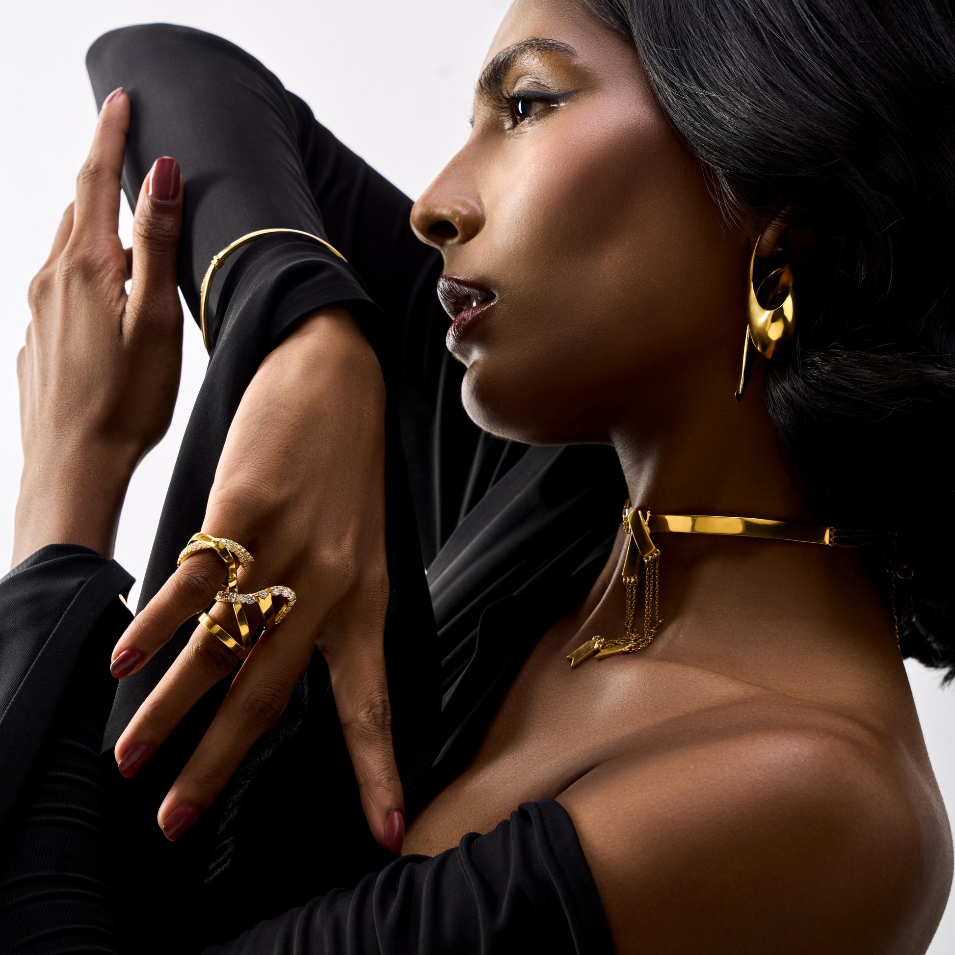 Our Turner ring is not named so, because it will turn heads, although it's guaranteed to do that. Our Turner ring is named after Lana Turner. One of the most glamorous leading ladies of Classic Hollywood. Not only was she a Glamour icon, she was also an actress who could hold her own alongside the best on screen. Our two finger Turner ring adds an oomph of understated glamour with the way it'll wrap around your fingers and dazzle the crowd around you.